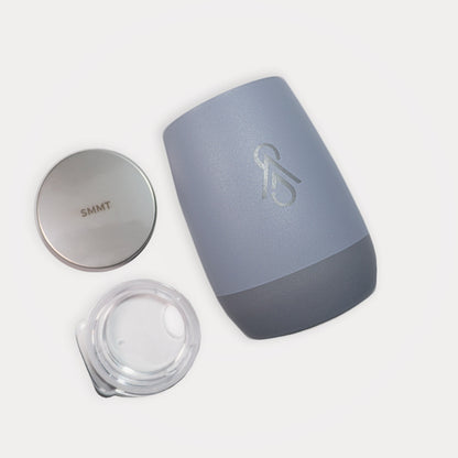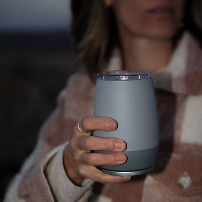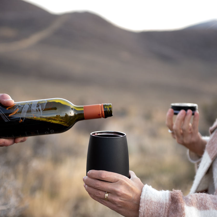 + Patent-pending Sip & Stow lid system+ 3-Way Precision Insulation+ 100% leak proof+ Magnetic lid stows below during use+ Crafted for wine or coffee+ 2 tumblers = 1 bottle of wine+ Aromatic Curved shape for flavor+ Kitchen-grade stainless steel+ No-slide base design+ Dishwasher-safe
